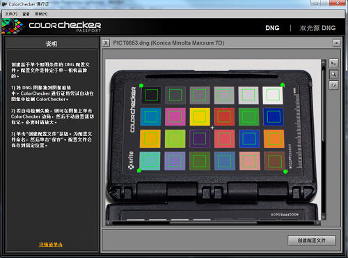 要取得更好的效果,當拍攝環(huán)境改變時,需要重新拍攝一次色卡(如果你把它掛在脖子上,會發(fā)現(xiàn)這沒什么麻煩的)。但如果光照非常接近,只需要拍攝一次色卡,制作出的DNG配置文件就可以套用到同環(huán)境下其他拍攝的照片上。也就是說,你只要制作幾個常用拍攝環(huán)境下(日光、陰天、室內(nèi)白熾燈、室內(nèi)鎢絲燈、閃光燈等)的配置文件一般就夠用了,而且軟件還支持制作雙光源色彩配置文件,可能準確度上會有所下降,但是適用性更廣。