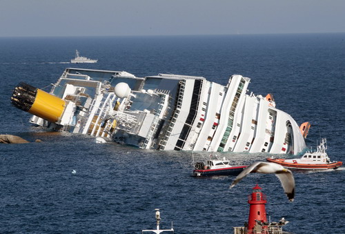 意大利豪華游輪“協(xié)和”號觸礁傾覆(圖)照片,猶如“泰坦尼克”號再現(xiàn)