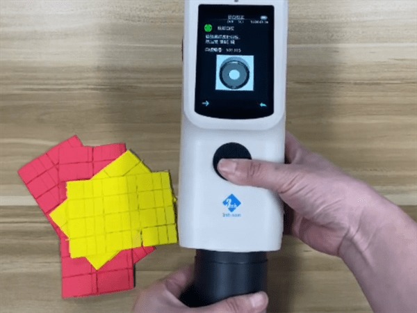 移動色差寶,重新選取一個測量點。重復上述測量步驟,完成試樣測量。