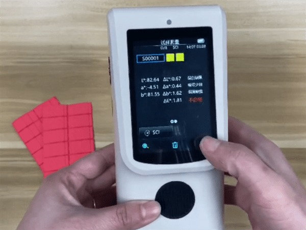 測量完成以后,會在測量屏幕顯示測量結果,如:本次測量顯示“不合格”,證明色差較大,超過設定標準,則表明該批次硅膠產(chǎn)品不合格,需要從生產(chǎn)工藝等流程進行改進。色差寶測出的數(shù)據(jù)為生產(chǎn)工藝的調(diào)整提供了顏色數(shù)據(jù)參考。如果想要查看更多數(shù)據(jù),還可以下載色差寶app,實現(xiàn)更多的數(shù)據(jù)檢測和功能擴展。