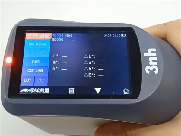 3. 標(biāo)樣測(cè)量。選擇好測(cè)量點(diǎn)和測(cè)量口徑,將YS4510分光測(cè)色儀測(cè)量口貼緊弧面產(chǎn)品,一定要貼緊,避免漏光,影響測(cè)量結(jié)果的準(zhǔn)確性,輕觸測(cè)量鍵進(jìn)行測(cè)量。