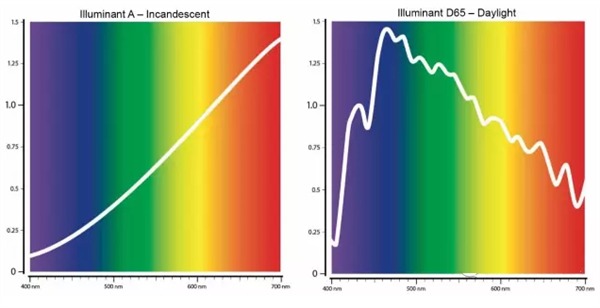 光譜反射曲線不同的顏色在一組觀察和照明條件下匹配,但在另一種條件下不匹配,這種現(xiàn)象稱之為同色異譜對(duì)或條件配色對(duì)。同色異譜評(píng)價(jià)是物體顏色檢測(cè)的重要色度指標(biāo)。本文主要介紹了同色異譜評(píng)價(jià)的標(biāo)準(zhǔn)光源及比色條件。