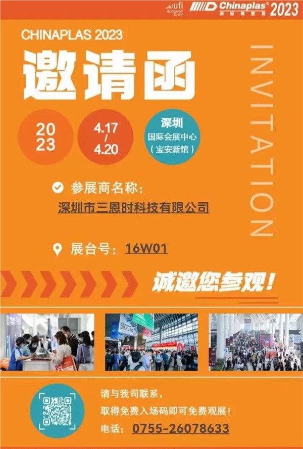 第三十五屆中國國際塑料橡膠工業(yè)展覽會(Chinaplas 2023 國際橡塑展)即將于4 月17-20日在中國深圳舉辦。三恩時可以提供顏色、光澤度、透光率等的檢測方案和設備,助力塑料橡膠行業(yè)的良性健康發(fā)展,誠摯地邀請您在展會期間蒞臨參觀我們的展臺。