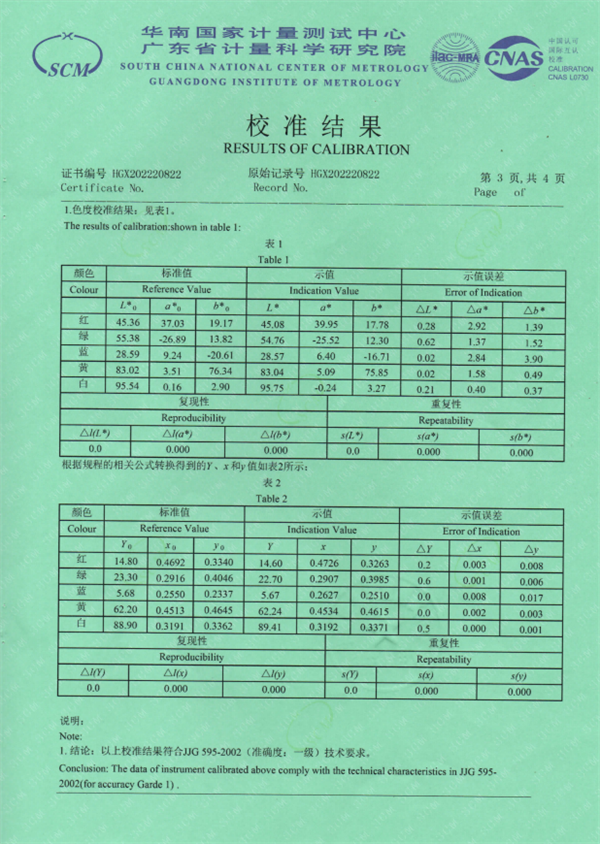 為了觀察得更為直觀,可以參看一級(jí)色差儀計(jì)量證書.