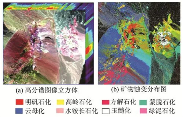 目前,該項(xiàng)技術(shù)在礦物填圖、植被生化參數(shù)探測(cè)和大氣參數(shù)反演等領(lǐng)域得到廣泛應(yīng)用。礦物識(shí)別和礦物填圖是高光譜技術(shù)最成功的應(yīng)用領(lǐng)域。通過對(duì)礦物種類、豐度和成分的識(shí)別,特別是與成礦作用密切相關(guān)的蝕變礦物的識(shí)別,可以用來有效地圈定熱液礦化蝕變帶,定量或半定量估計(jì)相對(duì)蝕變強(qiáng)度和蝕變礦物含量,給出對(duì)成礦作用的規(guī)模和強(qiáng)度的有益認(rèn)識(shí),這對(duì)加強(qiáng)礦產(chǎn)資源調(diào)查,為礦產(chǎn)調(diào)查尋找礦靶區(qū)和新發(fā)現(xiàn)礦產(chǎn)地提供了可靠的理論依據(jù)。