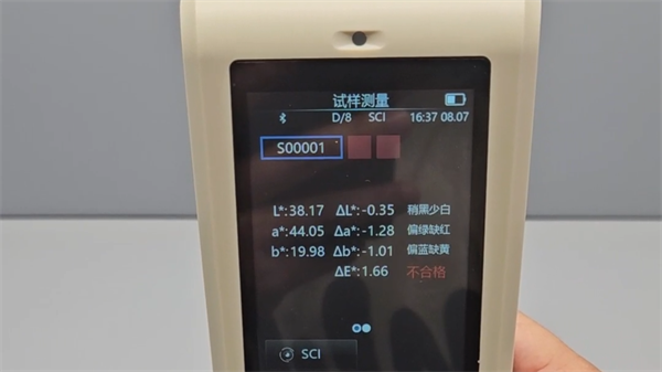 4. 讀取結(jié)果:測量完成后,CR8分光色差儀將在屏幕上顯示粉餅樣品的色度坐標(biāo)(如L*、a*、b*值)和色差值(如ΔE)。這些數(shù)值反映了粉餅顏色的亮度、紅綠偏差和黃藍(lán)偏差以及與標(biāo)準(zhǔn)色的差異程度。