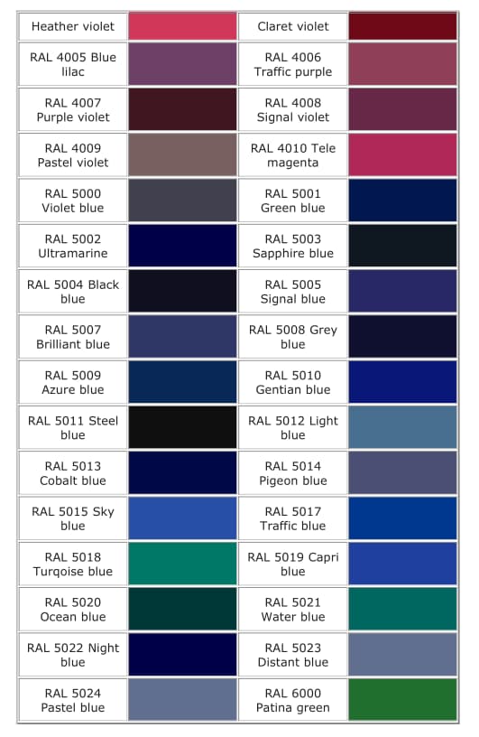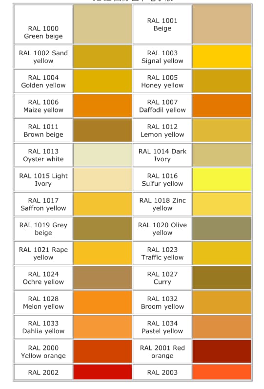 這些顏色編號和名稱僅作為示例,實際勞爾RAL國際色卡中包含了更多的顏色。