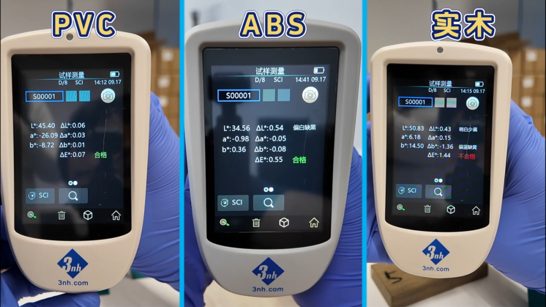 三恩時(shí)便攜式分光測色儀,可以直接測定△Eab*值,通過設(shè)置容差,儀器會直接判定封邊條的顏色是否合格。在封邊條的來料檢測、成品檢測以及封邊條和板材的配色中均可發(fā)揮重要作用。