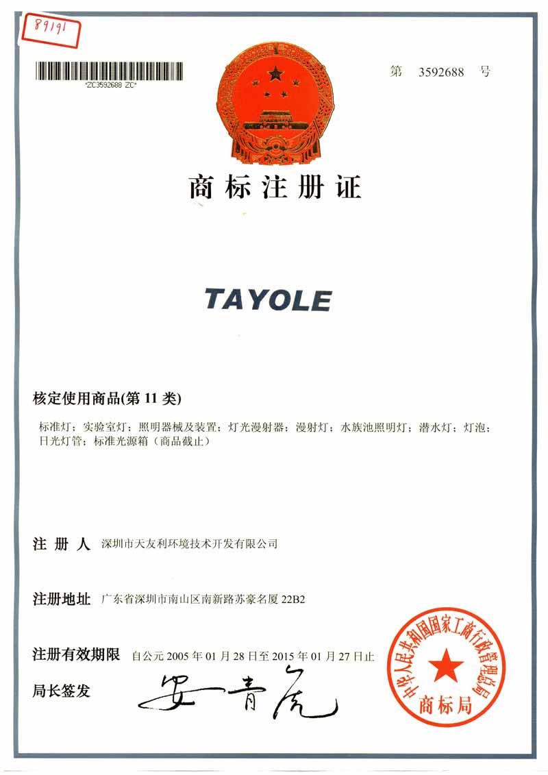 深圳市天友利標(biāo)準(zhǔn)光源有限公司、深圳市天利泰路科技有限公司(生產(chǎn)廠家)成立于1998年12月30日,先后注冊(cè)了商標(biāo):TILO、TAYOLE和天友利等,并在香港也成立了公司:卡羅卡超香港有限公司。