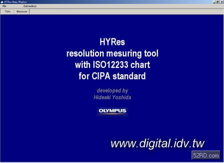 以解像力測試來說,日系和美系的標準同樣根植于 ISO 12233 之上??墒窃趹?yīng)用上卻有顯著的不同,東西方文明本就存在著差異,何者好用耐用,其實也是因人而異的問題。首先介紹日系的解像力檢測軟件 HYRes 3.1,這套軟件是 CIPA 日本相機工業(yè)協(xié)會制訂的檢測標準 ,協(xié)同 Olympus 公司共同開發(fā),使用上如同日本的產(chǎn)品一樣,相當簡單且一目了然。