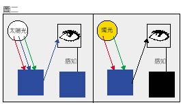 另外,就是顯色性的問(wèn)題。顯色性就是指物體于日光與人工光源照射下顏色的相符程度,物體在日光中所呈現(xiàn)的顏色是準(zhǔn)確的,因?yàn)槿展庵械墓庾V能量分布全面,亦能夠完整表達(dá)物體的顏色(此時(shí)日光的顯色指數(shù)為更高的100Ra)。但是人造照明體因應(yīng)不同物料,其光譜能量分布仍與日光有很大差別,然而,就算照明體色溫已達(dá)5000K的人造白光,物體顏色仍與日光下看到的有所不同。多數(shù)問(wèn)題都是人造光源中往往會(huì)缺少某些單色光成分,其顯色指數(shù)亦低于100Ra。顯色指數(shù)的高低,代表了該物體的失真情況。(圖二)