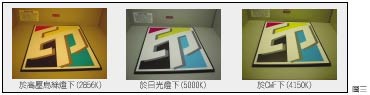 我們于生產(chǎn)時(shí)一般測(cè)量色溫的變化已足夠,因?yàn)檎彰黧w的穩(wěn)定性會(huì)隨著時(shí)間、環(huán)境而改變。雖然市面上有色溫表(于專業(yè)攝影器材公司可購(gòu)買(mǎi)),但價(jià)錢(qián)不便宜,日常檢查色溫有較便宜的方法,像一種叫光源標(biāo)示貼(GATF/RHEM)的貼紙(由GATF制造),當(dāng)我們把該指示貼放在觀察環(huán)境下,當(dāng)色溫出現(xiàn)變化時(shí),它會(huì)作出警告,以提醒操作員是否需要更換光管。(見(jiàn)圖三、圖四)