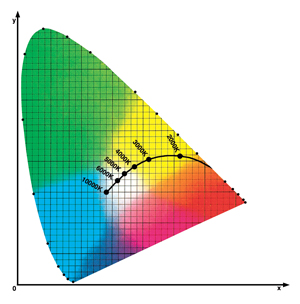 光源的色溫是以光源發(fā)光時(shí)所顯現(xiàn)的顏色與一個(gè)絕對(duì)黑體被高溫燃燒時(shí)所顯現(xiàn)的顏色相一致時(shí)的燃燒溫度來(lái)定義的,它的單位是絕對(duì)溫度Kelvin(K)。K值越高,顯現(xiàn)的顏色就愈趨向于白藍(lán)色;K值越低,顯現(xiàn)的顏色就愈趨向于黃紅色。