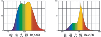 (2)光源的顯色指數(shù)Ra>90,即在這種光源下,可以正確地觀察到90%以上的顏色。