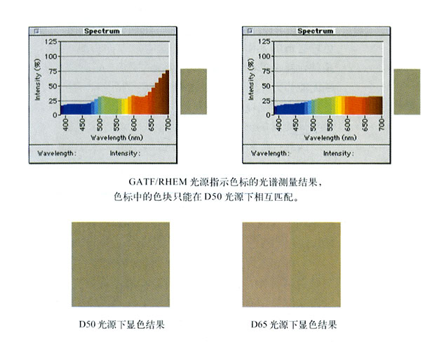 色度計不能探測出同色異譜。它們只能夠告訴你在特定的照明條件下兩個顏色樣品是否匹配,但是它們沒法說清這種匹配是不是在這個特定照明和觀察條件下的同色異譜,也不能告訴你兩個樣品是否真的是具有相同的光譜特性,是否能夠在所有照明體下都是相互匹配的。幸運的是,對于大多數(shù)色彩管理用途來說,在一種照明條件下計算顏色匹配已經(jīng)足夠了。