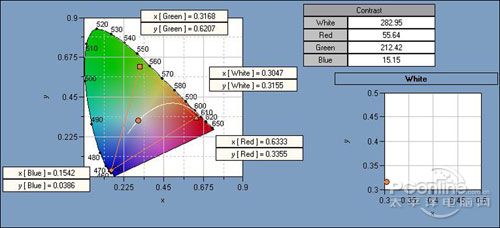 我們?cè)诒敬卧u(píng)測(cè)中使用了PConline評(píng)測(cè)室花巨資購進(jìn)的日本CS-200分光色度計(jì)進(jìn)行客觀評(píng)測(cè),通過數(shù)據(jù)指標(biāo)的方式判斷液晶屏幕的優(yōu)劣。CS-200分光色度計(jì)可以測(cè)試多種光度指標(biāo),包括亮度、色度、色域等,特別是在低亮度的情況下仍然能夠保持非常高的精度,能夠精確的反映液晶屏幕的性能指標(biāo)。