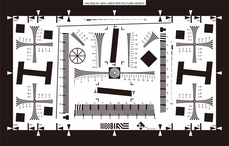 解析度卡(分辨率卡)是標(biāo)準(zhǔn)樣張,可以提供實際拍攝的垂直分辨率和水平分辨率等輔助測試。