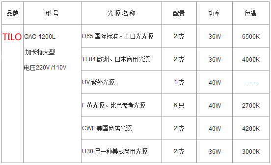 標(biāo)準(zhǔn)光源對色燈箱參數(shù):
