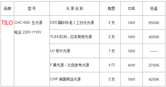 標(biāo)準(zhǔn)光源對(duì)色燈箱參數(shù):