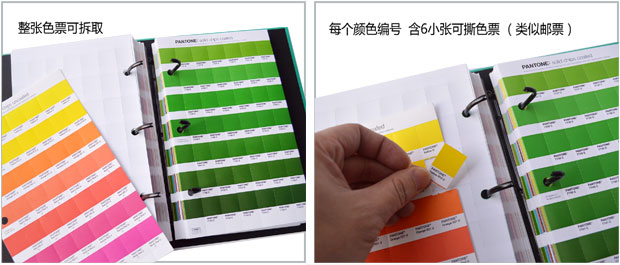 C/U可撕式色卡;如:518C或7506U,一套兩本裝,1本帶C可撕色票及1本帶U可撕色票(注:C為亮光顏色,U為啞光顏色),每本均有1,755個(gè)顏色,每色可六次撕出來(lái)使用,并可隨時(shí)補(bǔ)充!