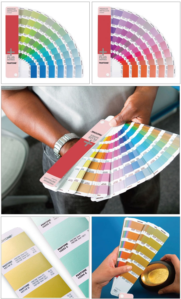 全新的PLUS系列高級金屬色— 光面銅版紙[PLUS SERIES PREMIUM METALLICS]包含300種光彩奪目的金屬色,以滿足人氣急速攀升的特效油墨需求。PLUS系列金屬色更閃亮耀眼,可輕松涂層而絲毫無損光澤度。其 印后壽命更長,無需擔(dān)心脫色或產(chǎn)生斑點。扇形指南按色譜順序排列,使得色彩選擇更加直觀。提供油墨配方。包含設(shè)計軟件。只提供光面銅版紙。