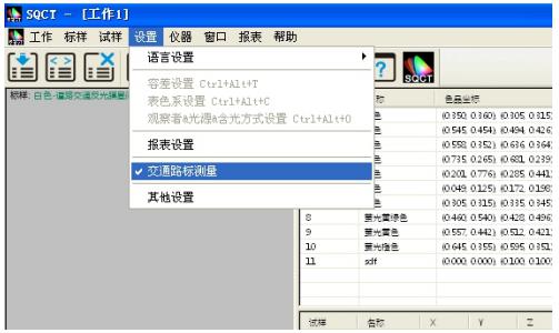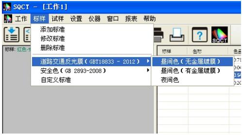 針對(duì)國(guó)內(nèi)交通路標(biāo)使用較多的標(biāo)準(zhǔn)GB/T 18833,SQCT軟件將該標(biāo)準(zhǔn)中的標(biāo)準(zhǔn)色域納入其中,客戶只需根據(jù)自己需要進(jìn)行選擇即可。