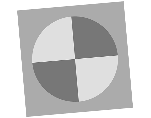 SFRreg測(cè)試卡由一個(gè)傾斜的象限分布密封在一個(gè)圓內(nèi)。用于測(cè)量MTF和橫向色差。一個(gè)測(cè)試圖像通常包含自動(dòng)檢測(cè)和SFRreg分析模塊幾個(gè)目標(biāo)。