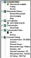 采用SpectraMagic NX,所有儀器信息(狀態(tài)、測(cè)量選項(xiàng)、上次校準(zhǔn)、通信狀態(tài)和儀器設(shè)置)均清晰可見。