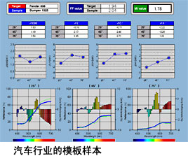 | 圖表顯示 | 光譜反射比(能見度)及其色差,K/S及其色差,吸收率及其色差,L*a*b*絕對值,L*a*b*(2D/3D色差分布,MI),xy色度圖,每個色空間的趨勢圖和柱狀圖以及色差方程式 |